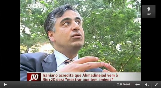 پیام اخوان، بنیانگذار مشترک و عضو هیات مدیره مرکز اسناد حقوق بشر ایران در تلویزیون گلوبو برزیل در مورد پیشنهادهای احمدی نژاد به برزیل و وضعیت ضعیف حقوق بشر در ایران صحبت می کند.